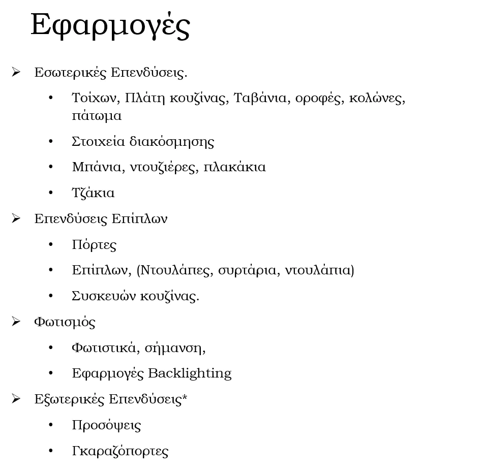 Μέχρι σήμερα αυτές οι συμπαγείς πέτρες ήταν το μόνο πρακτικό μέσο για τη δημιουργία πραγματικής όψης πέτρας. Τις γνωρίζουμε ως ανθεκτικά υλικά που χρησιμοποιούνται σε δάπεδα και επενδύσεις. Γενικά εύκολες στην επεξεργασία, με τα κατάλληλα μηχανήματα φυσικά αλλά και αρκετά βαρύ σαν υλικό. Άρα και πολύ δύσκολο στον χειρισμό, περιορίζοντας την χρήση του σε πολλές εφαρμογές.